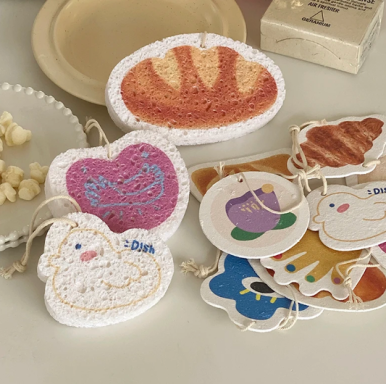 수세미에 원하는 도안을 인쇄하여 제작되는데요.